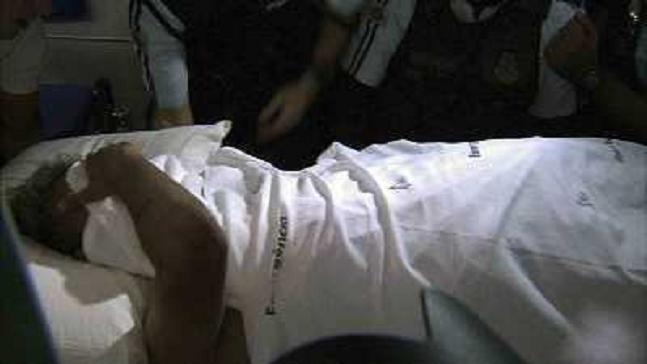 07/07/2014 Grandi eventi ITALY ONLY - Il calciatore del Brasile Neymar mentre lascia l'ospedale dove e' stato ricoverato dopo ...