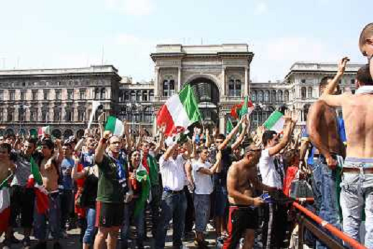 24/06/2010 Grandi eventi TIFOSI DELLA NAZIONALE ITALIANA DI CALCIO, IN PIAZZA DEL DUOMO A MILANO MENTRE GUARDANO LA PARTITA ...