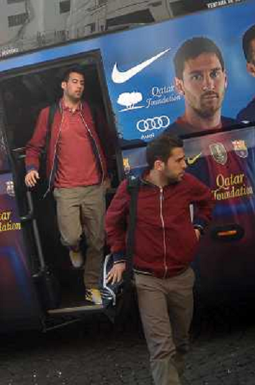 19/02/2013 Champions League ARRIVO DEI CALCIATORI DEL BARCELLONA PER LA PARTITA DI CHAMPIONS LEAGUE PIAZZA FONTANA MILAN ...