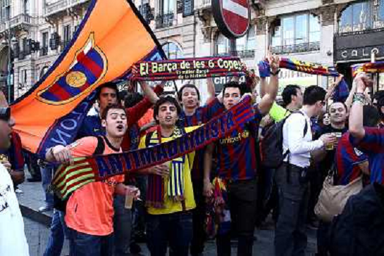 20/04/2010 Champions League TIFOSI DEL BARCELLONA CALCIO IN PIAZZA DUOMO A MILANO PRIMA DELLA PARTITA DI SEMIFINALE DI CHAMPION ...