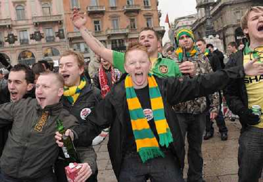 16/02/2010 Champions League TIFOSI DEL MANCHESTER UNITED IN PIAZZA DUOMO A MILANO , PRIMA DELLA PARTITA DI COPPA CAMPIONI CONTR ...