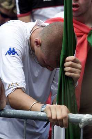 18/06/2002 Italia MILANO,18-06-02 DUOMO, LA DELUSIONE DEI TIFOSI DOPO L'ELIMINAZIONE DELL'ITALIA.