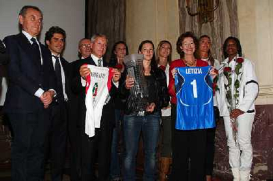 09/04/2009 Volley FOPPAPEDRETTI BERGAMO VOLLEY FEMMINILE PREMIATA DAL SINDACO DI BERGAMO ROBERTO BRUNI PER LA VITTORIA ...
