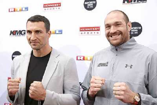 29/04/2016 Altri ITALY ONLY - Wladimir Klitschko und Tyson Fury bei der Pressekonferenz 'Fury vs. Klitschko II' in de ...