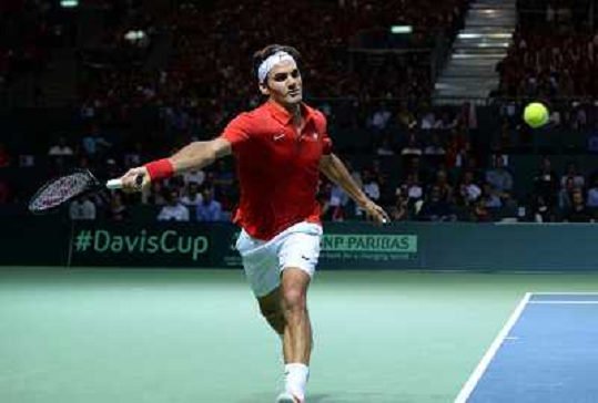 05/04/2014 Altri ITALY ONLY - Il tennista Roger Federer ai quarti di finale di Coppa Davis contro Mikhail Kukushkin a ...