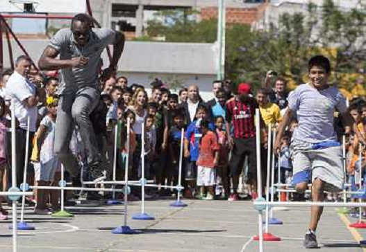 14/12/2013 Altri ITALY ONLY - Il primatista giamaicano Usain Bolt segna l'inizio di una gara sportiva per i bambini d ...
