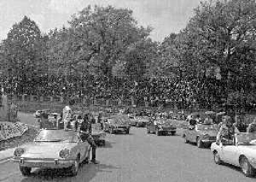 24/04/2018 Altri 1972 IMOLA Curva Acque Minerali coi Piloti schierati sulle auto per un giro d'onore prima della par ...