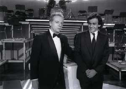 23/11/2023 Programmi tv JOHNNY DORELLI CON MICHEL PLATINI A MIILANO NELL'ANNO 1985 NELLA TRASMISSIONE TELEVISIVA “PREMIATISS ...