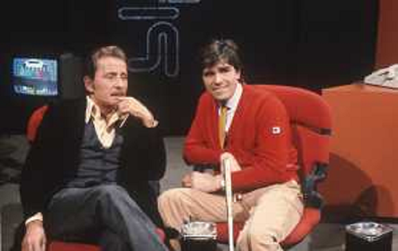 10/12/2023 Programmi tv ENZO TORTORA CON RENE' LONGARINI NELLA TRASMISSIONE TELEVISIVA “PORTOBELLO“ NELL'ANNO 1983