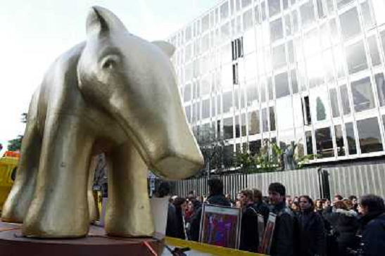 13/01/2004 Programmi tv STAFFELLI VALERIO CON IL MAXI TAPIRO DAVANTI ALLA SEDE RAI