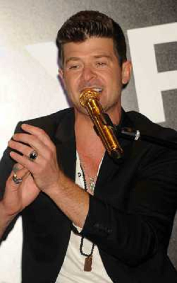 26/03/2014 Concerti ONLY ITALY-Robin Thicke performs during the grand opening of EXPRESS Times Square
