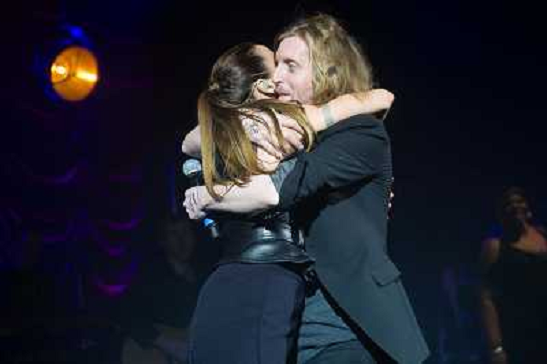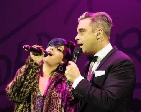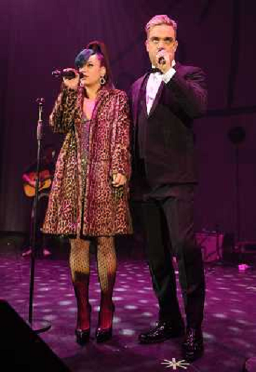 16/01/2014 Concerti ONLY ITALY- Lily Allen and Robbie Williams on stage at the 'Under 1 Roof' concert, held at Hammersmi ...