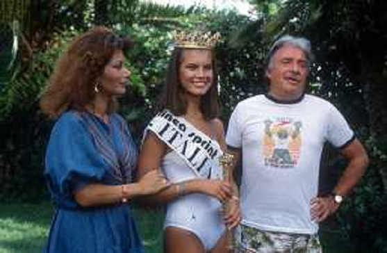 17/04/2025 Personaggi EDWIGE FENECH CON FEDERICA MORO E UGO TOGNAZZI NELL'ANNO 1982 OSPITE DELLA MANIFESTAZIONE “MISS ITA ...