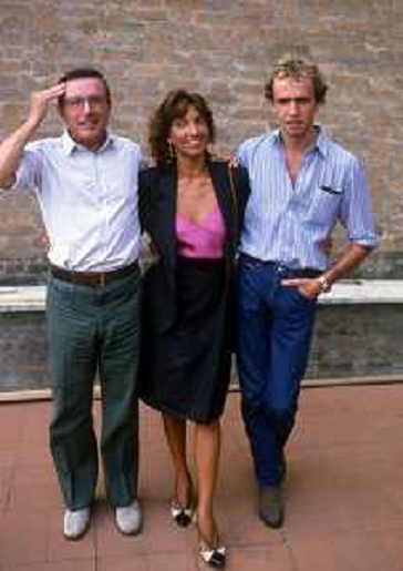 16/08/2024 Personaggi JEANNE MOREAU CON HANNO POSCHL E BRAD DAVIS A VENEZIA NELL'ANNO 1982