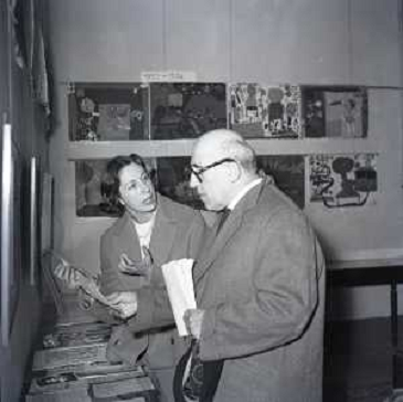 21/12/2023 Personaggi CESARE ZAVATTINI A ROMA NELL'ANNO 1955 A UNA MOSTRA DEI QUADRI DEI BAMBINI