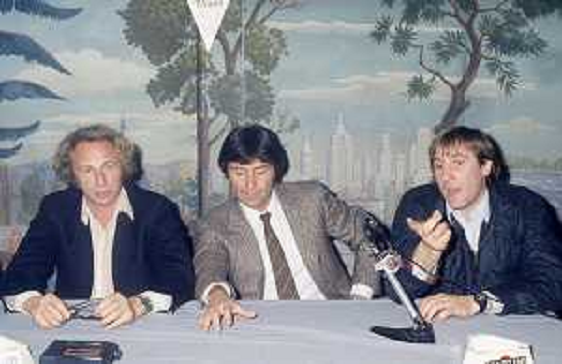 18/10/2023 Personaggi GERARD DEPARDIEU CON BERTRAND BILIER E MICHEL BLANC A CANNES NELL'ANNO 1986