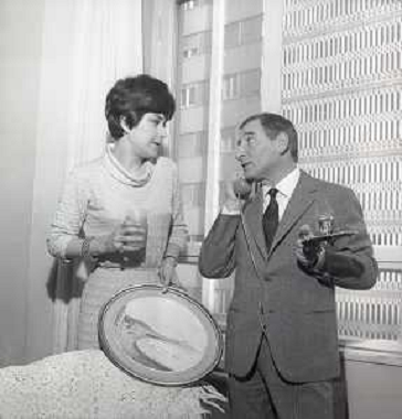 10/08/2023 Personaggi RENATO RASCEL CON HUGUETTE CARTIER A MILANO NELL'ANNO 1966