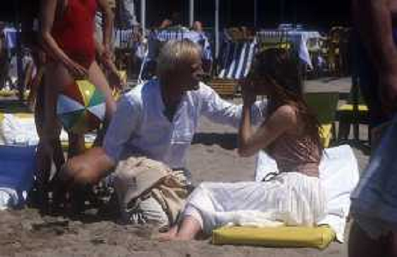 27/07/2022 Personaggi KLAUS KINSKI A CANNES NELL'ANNO 1980 CON LA FAMIGLIA IN SPIAGGIA