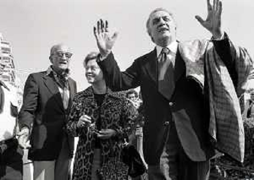 28/09/2025 Personaggi Federico Fellini al Cocktail all'aperto in una zona di periferia davanti all'Hotel dei Congressi per ...