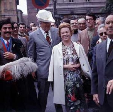 28/09/2025 Personaggi FEDERICO FELLINI CON GIULIETTA MASINA MATRICOLA D'ONORE AL'UNIVERSITA' DI PAVIA NELL'ANNO 1971