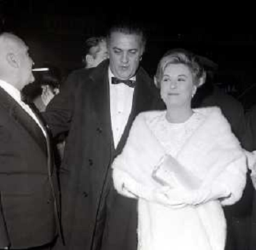 28/09/2025 Personaggi Federico Fellini con la moglie Giulietta Masina e Angelo Rizzoli alla Prima di ' Giulietta degli Spi ...