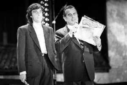 08/01/2022 Personaggi FABIO FAZIO NELL'ANNO 1994 A MILANO PER LA CONSEGNA DEI TELEGATTI CON MARINO BARTOLETTI E IDRIS