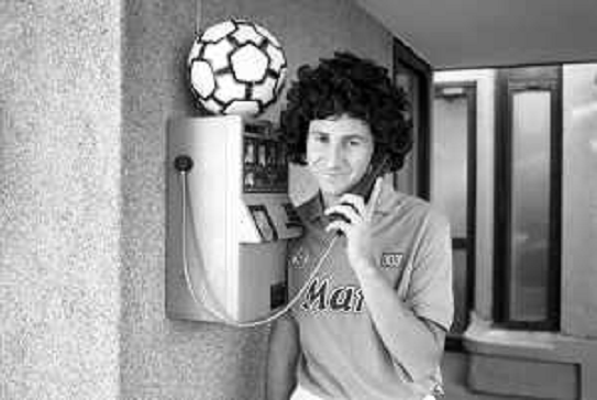 04/11/2021 Personaggi FABIO FAZIO CONDUTTORE TELEVISIVO CON LA DIVISA DEL NAPOLI CALCIO IMITA MARADONA NEL 1989 - RETROSPE ...