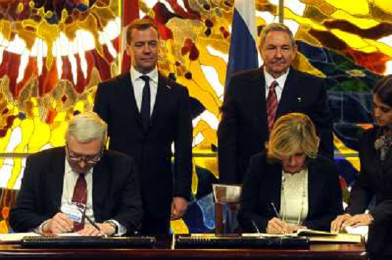 23/02/2013 Avvenimenti ONLY ITALY-Il Primo Ministro Russo Dimitri Medvedev (L, Back) e il Presidente Cubano Raul Castro (R, ...