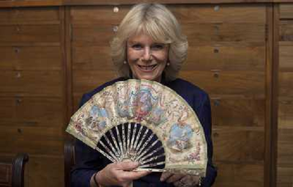 24/02/2013 Avvenimenti ONLY ITALY-Britain's Camilla, Duchess of Cornwall, holds a fan during a visit to the Fan Museum in G ...