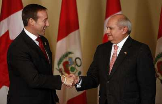 03/03/2013 Avvenimenti OTTAWA, March 2, 2013 () -- Canada's Defense Minister Peter MacKay (L) shakes hands with his Peruvia ...