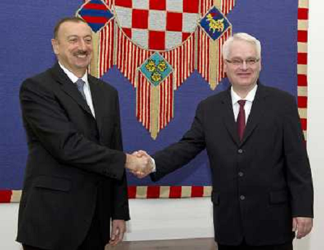 12/03/2013 Avvenimenti ONLY ITALY-ZAGREB, March 11, 2013 () -- Visiting Azerbaijan President Ilham Aliyev (L) shakes hands ...