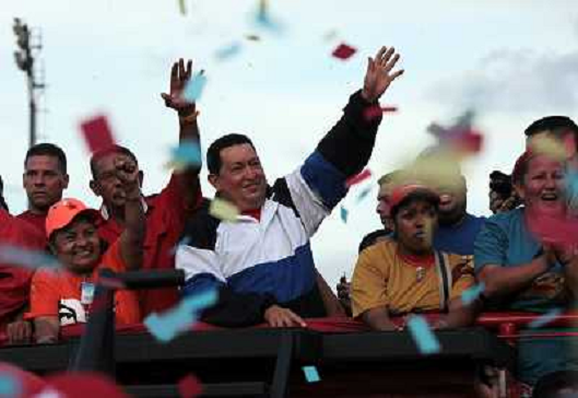 10/08/2012 Avvenimenti ITALY ONLY - Il presidente del Venezuela e candidato alla presidenza Hugo Chavez con i suoi sostenit ...