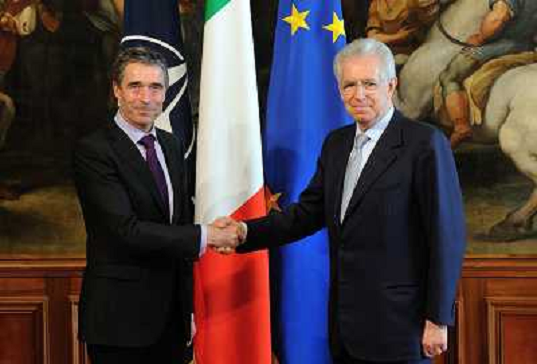 28/04/2012 Avvenimenti ITALY ONLY - ROMA 28 Aprile 2012 il primo Ministro Mario Monti incontra il segretario NATO Anders F ...