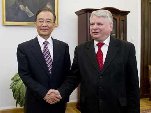 26/04/2012 Avvenimenti ONLY ITALY-WARSAW, April 25, 2012 () -- Chinese Premier Wen Jiabao (L) meets with Polish President B ...