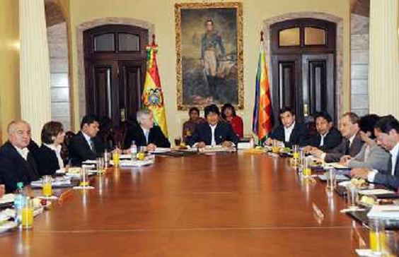 26/01/2012 Avvenimenti ITALY ONLY: BOLIVIA - IL PRESIDENTE BOLIVIANO EVO MORALES AD UN INCONTRO CON IL NUOVO GABINETTO DI G ...