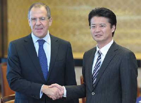 29/01/2012 Avvenimenti ONLY ITALY-TOKYO, Jan. 28, 2012 () Russian Foreign Minister Sergei Lavrov (L) shakes hands with J ...