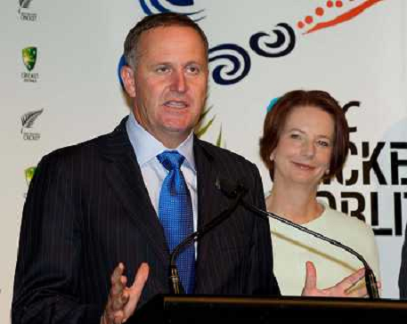 29/01/2012 Avvenimenti only italy-MELBOURNE, Jan. 28, 2012 () The Prime Minister of New Zealand John Key (L) and Australi ...