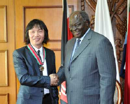 30/11/2011 Avvenimenti ITALY ONLY - NAIROBI Il presidente keniano Mwai Kibaki premia il fotografo cinese Luo Hong dell'Or ...