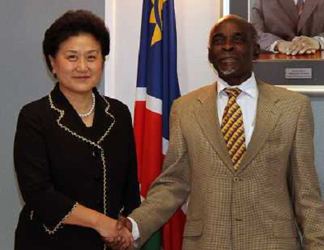 01/12/2011 Avvenimenti ITALY ONLY - WINDHOEK il consigliere di Stato cinese Liu Yandong (L) stringe la mano al primo minist ...