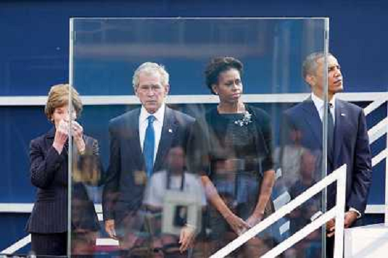 13/09/2011 Avvenimenti ITALY ONLY - New York City , L'ex presidente George W. Bush e il Presidente in carica degli Sati Un ...