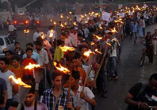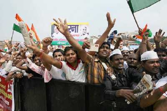 19/08/2011 Avvenimenti ITALY ONLY - Bhopal , India , manifestazione di supporto ad Anna Hazare , attivista politico contr ...