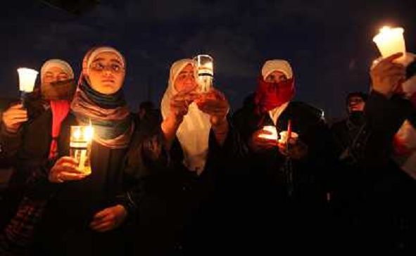 11/04/2011 Avvenimenti ITALY ONLY - Amman , Manifestanti siriani tengono candele durante un sit in contro il governo di Bas ...
