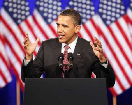 15/04/2011 Avvenimenti ITALY ONLY - CHICAGO , Il presidente degli Stati Uniti d'America Barack Obama parla ad un party racc ...