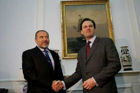 13/01/2011 Avvenimenti ONLY ITALY-Il ministro degli Esteri greco Dimitrios Droutsas (L) parla con il suo omologo israeliano ...