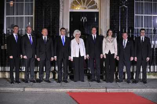 20/01/2011 Avvenimenti ITALY ONLY - LONDRA: Il primo ministro Britannico David Cameron saluta i primi ministri durante il v ...