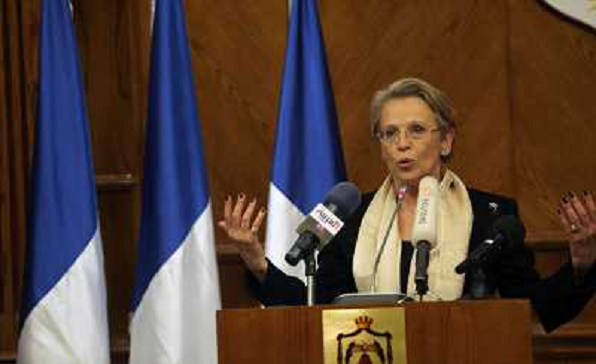 23/01/2011 Avvenimenti ONLY ITALY-AMMAN- Il ministro degli Esteri francese Michele Alliot-Marie (C) si incontra con il suo ...