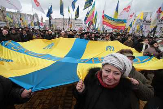 24/01/2011 Avvenimenti ITALY ONLY - La popolazione ucraina con la bandiera nazionale durante la celebrazione della Giornat ...