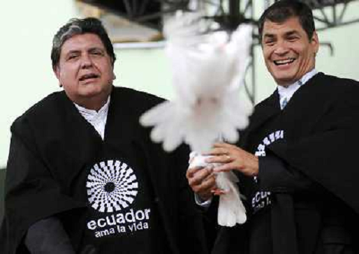 29/10/2010 Avvenimenti ITALY ONLY: LOJA ( ECUADOR). IL PRESIDENTE DELL' ECUADOR, RAFAEL CORREA, ED IL PRESIDENTE DEL PERU', ...