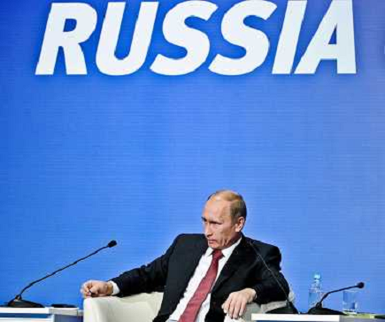 06/10/2010 Avvenimenti ITALY ONLY: MOSCA - IL PRIMO MINISTRO RUSSO VLADIMIR PUTIN DURANTE IL CONVEGNO " RUSSIA CALLING"