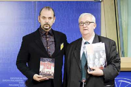 04/06/2010 Avvenimenti ITALY ONLY - BRUXELLES: L?europarlamentare leghista Mario Borghezio con il giornalista di origine ru ...